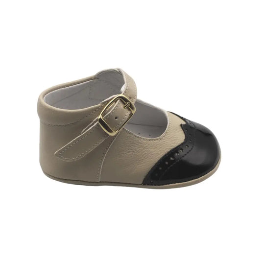Karolina- Beige/Black Leather Baby Mary Jane Shoes