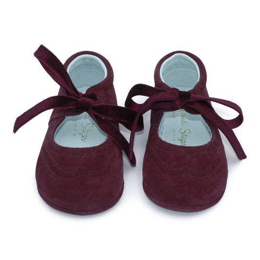Verónica - Burgundy Suede Baby Mary Jane Shoes