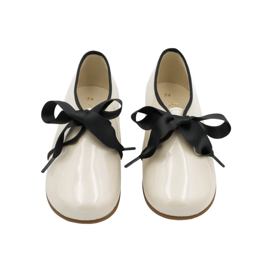 Coco- Light Beige/Black Leather Mary Jane Shoes