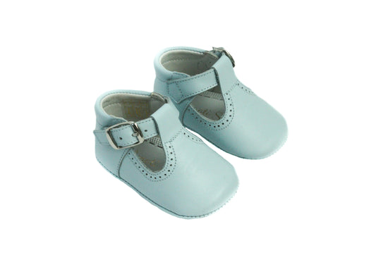 Alex- Light Blue Leather Baby T-Bar Shoes