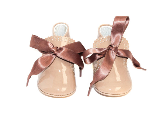 Chloe- Tan Patent Leather Baby Mary Jane Shoes